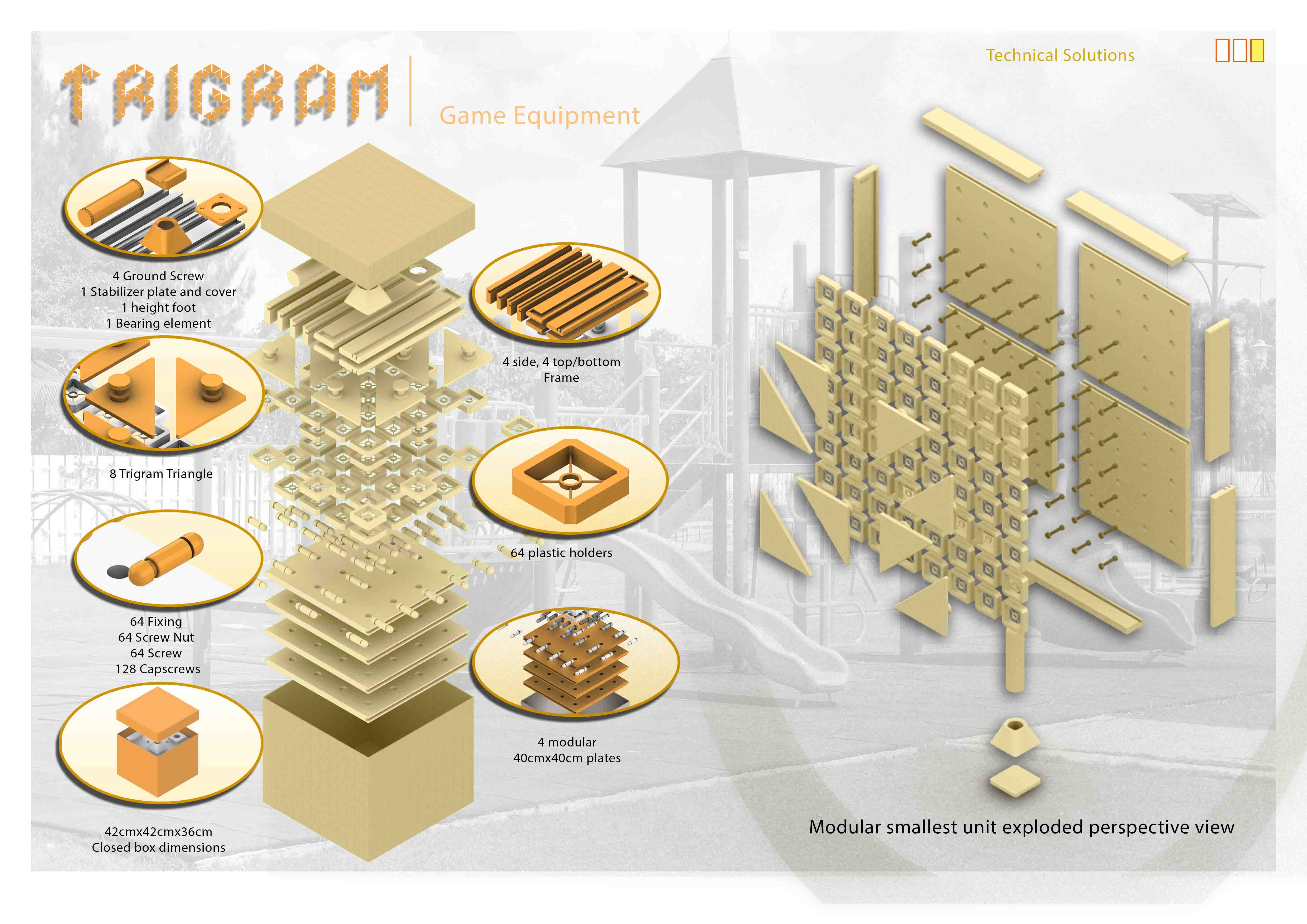 Trigram is a game board designed to help children make new friends in playgrounds. It also aims to facilitate a smooth transition by presenting the fear of standing up at the whiteboard during school as a normal part of daily life.